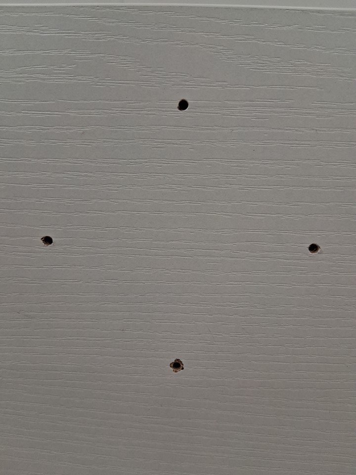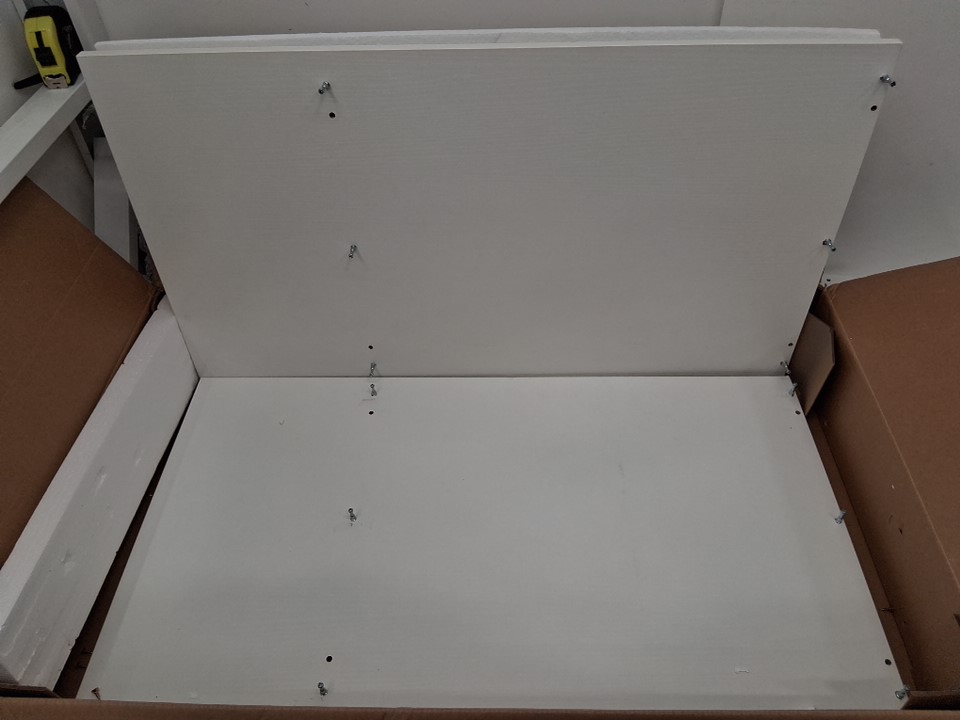 Please See Photos: - There are some minor signs of the item being put together before, on the holes the hardware goes into - There are some hardware pieces installed already