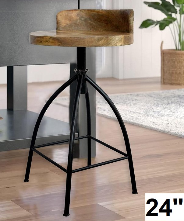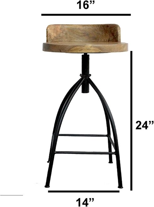 The Urban Port Industrial Style Swivel Counter Height Stool with Backrest - 24" - Wood, Metal