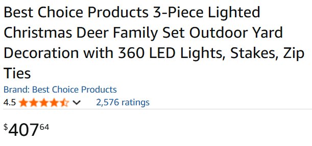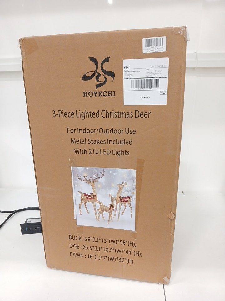 Our item does not shine as brightly as the cover image and the antlers on our deer may be a little different. NOTE: this item sheds a lot of glitter. This item has some damage and some of the glitter is off in certain areas. Additional hardware may be required for assembly. This item has been tested for power