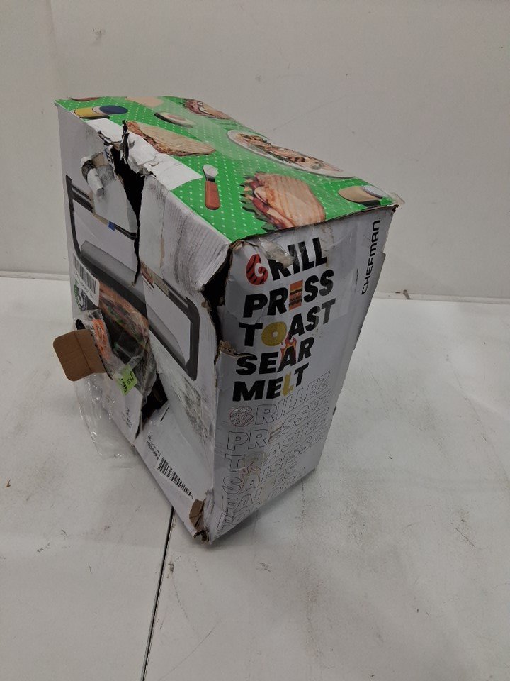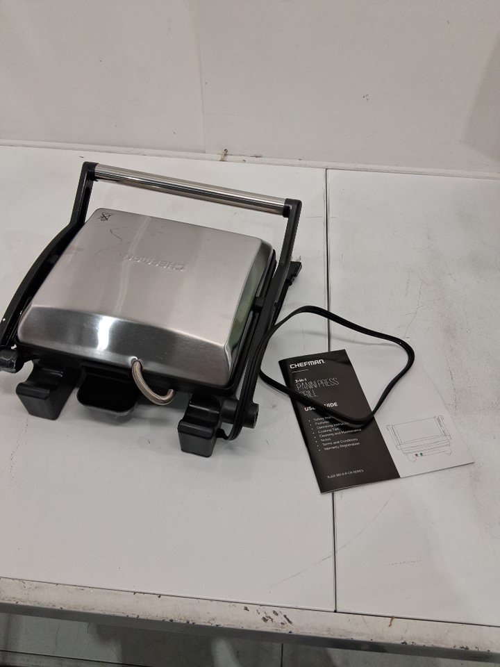 Chefman 3-IN-1 Panini Press Grill and Gourmet Sandwich Maker with Non-Stick Coated Plates Opens 180º - 1000W - 120V - black/silver - (model: tsk-2978ag)