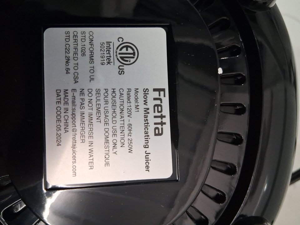 Fretta Cold Press Juicer Machines, Slow Masticating Juicer with 5.3" Extra Large Feed Chute, BPA FREE - 250W - BLACK (MODEL: M1)
