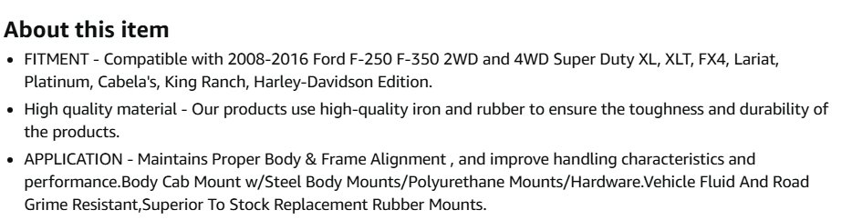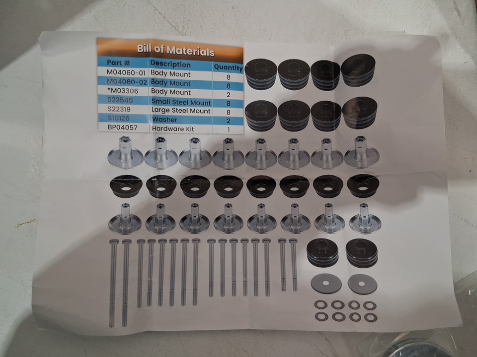 60PC SUPER DUTY BODY MOUNT BUSHING KIT FOR SELECT FORD MODELS (MODEL: M04060-01/M04060-02/M03306/S22545/S22319/S10126/BP04057)