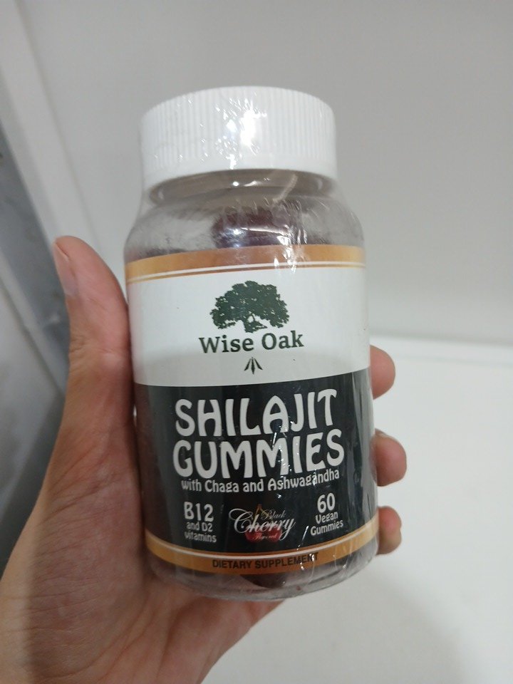 (60 gummies) wise oaks shilajit gummies with chaga and ashwagandha dietary supplement - cherry flavour -