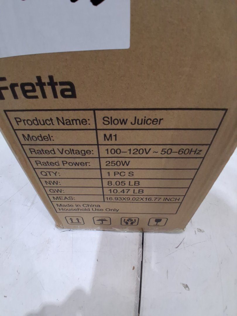 Fretta Cold Press Juicer Machines, Slow Masticating Juicer with 5.3" Extra Large Feed Chute, BPA FREE - 250W - BLACK (MODEL: M1)