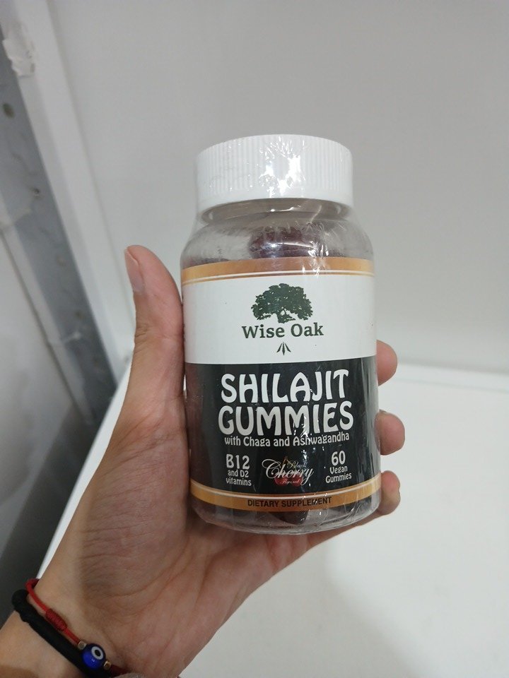 (60 gummies) wise oaks shilajit gummies with chaga and ashwagandha dietary supplement - cherry flavour -