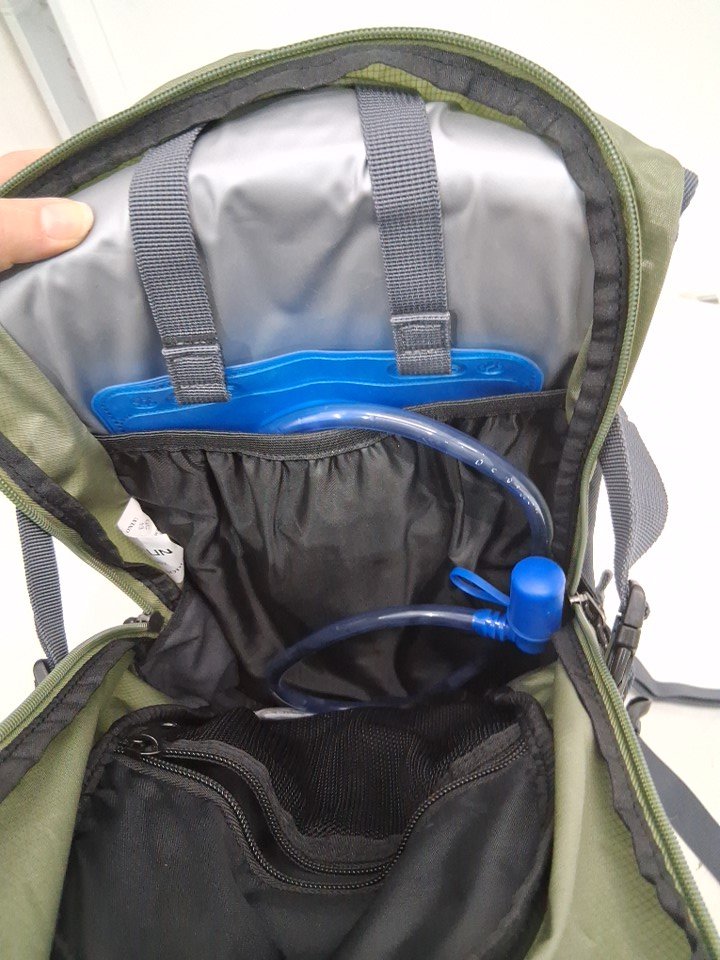 the water bladder has water residue inside from previous use the backpack is in excellent condition