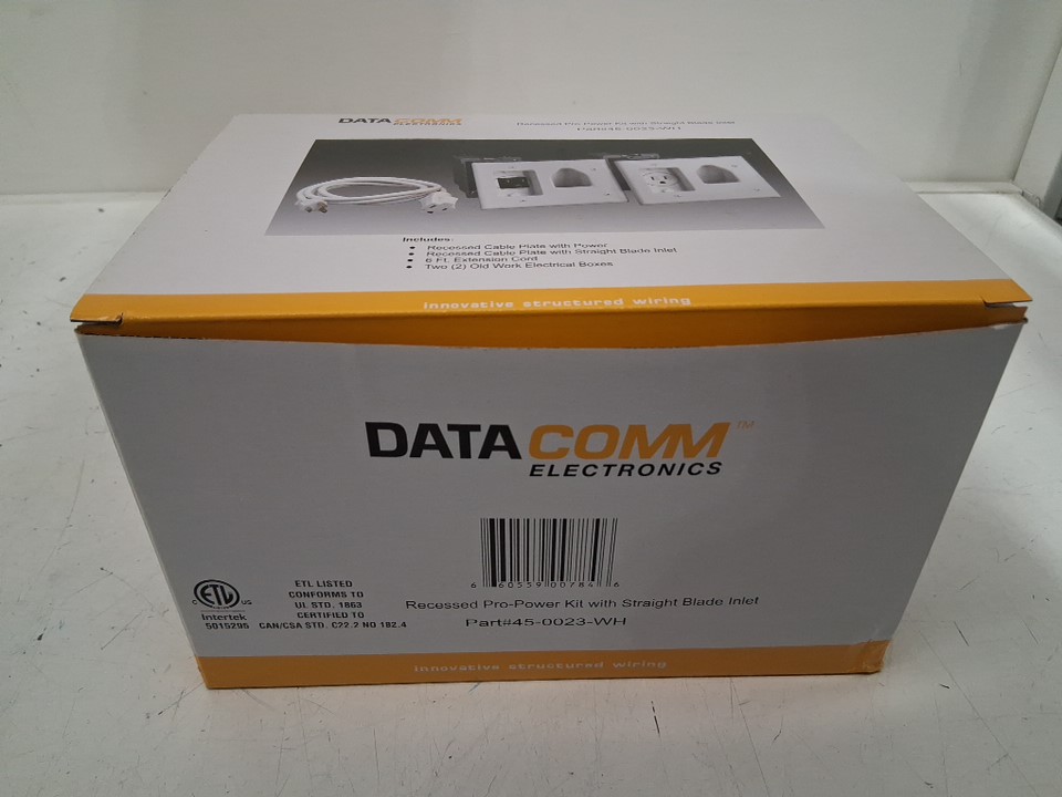 DATA COMM Electronics Recessed Pro-Power Kit with Straight Blade Inlet - 125V - 6FT cord - white (Model: 45-0023-WH)
