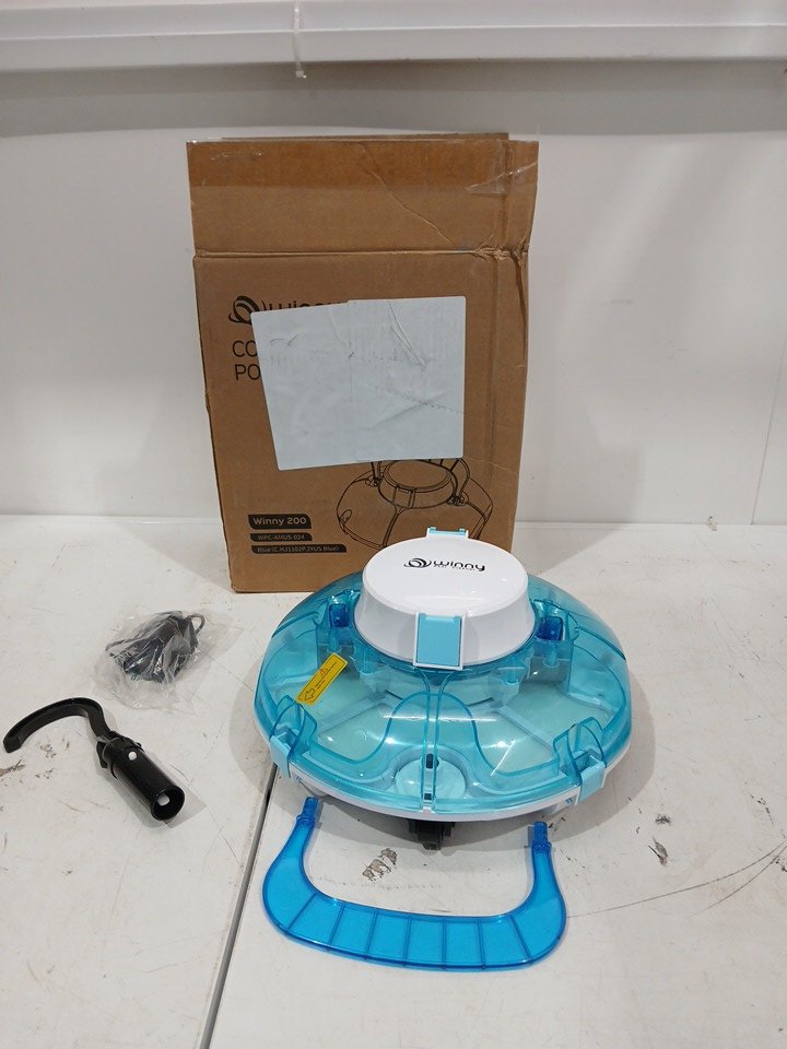 WINNY POOL CLEANER cordless robot vacuum cleaner - 645sq.ft - white/clear blue (model: wpc-amus-024)