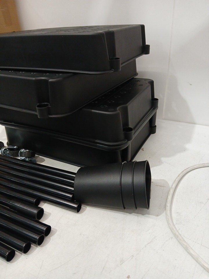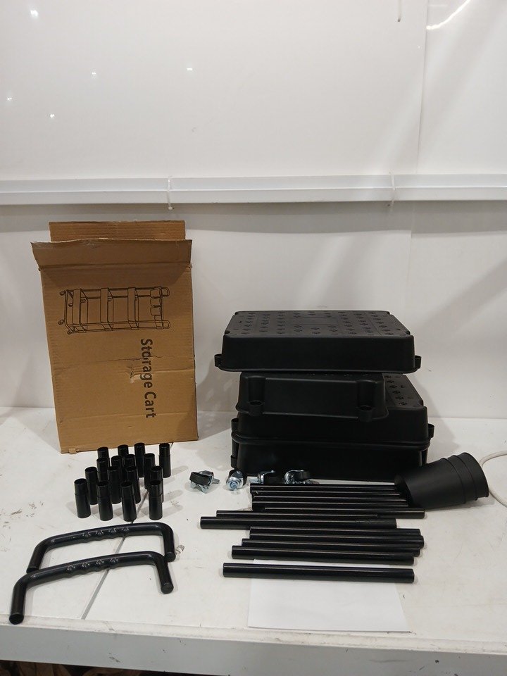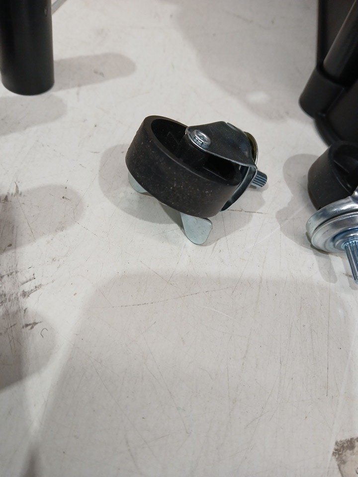 The poles show signs of scuffing from use and the wheels show signs of use.