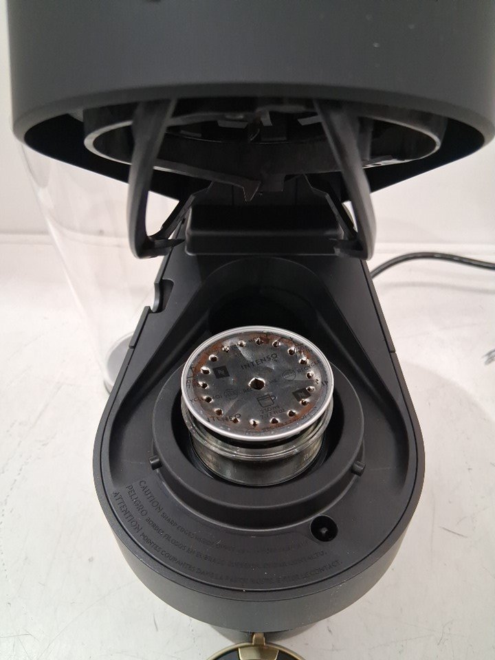 while inspecting the item, there was a coffee cup inside which indicates a previous use and there are some dust particles on the machine as well (see photos).
