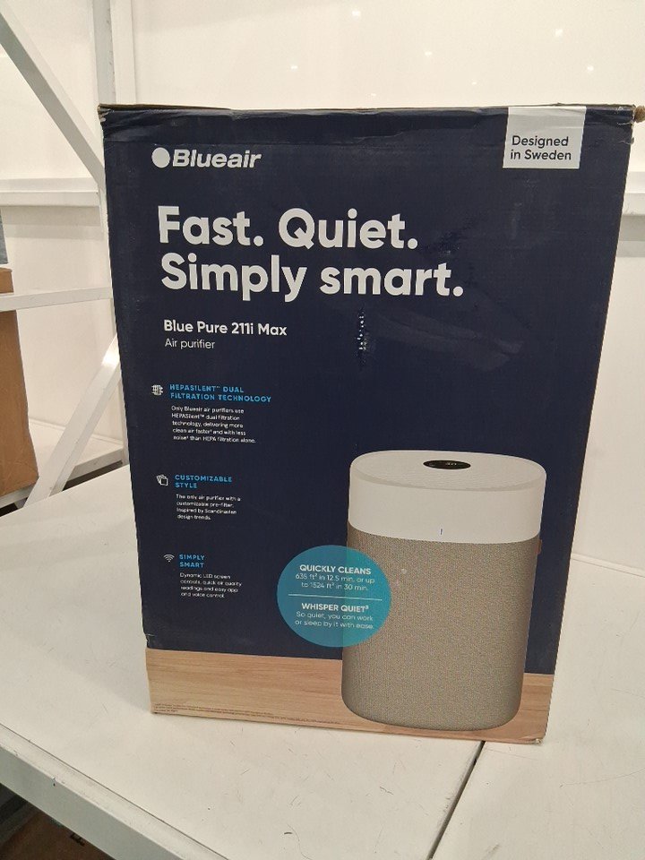 blueair pure 211i max hepasilent dual filtration large home smart air purifier - 1524 sq.ft - white/grey (model: 3613111100)