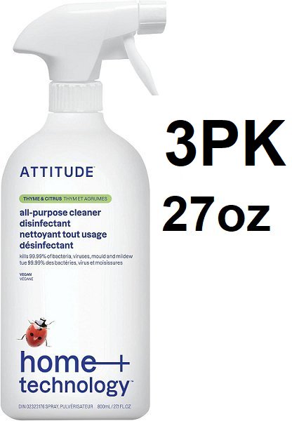 3pk aTTITUDE NATURAL CARE ALL-PURPOSE CLEANER DISINFECTANT - 27OZ - thyme & citrus