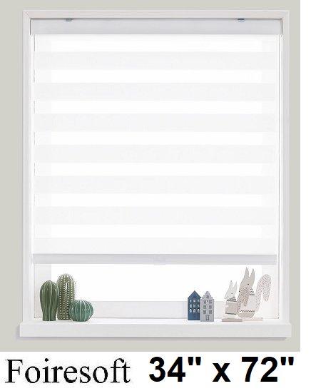 FOIRESOFT Cordless Custom Zebra Roller Shades window Blinds - 34" x 72" - white