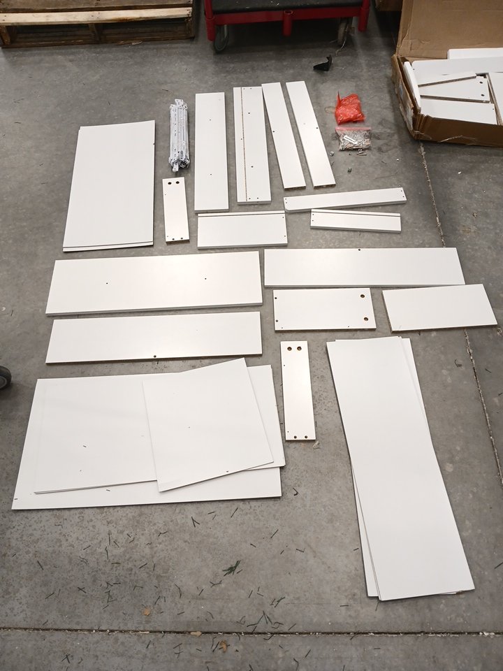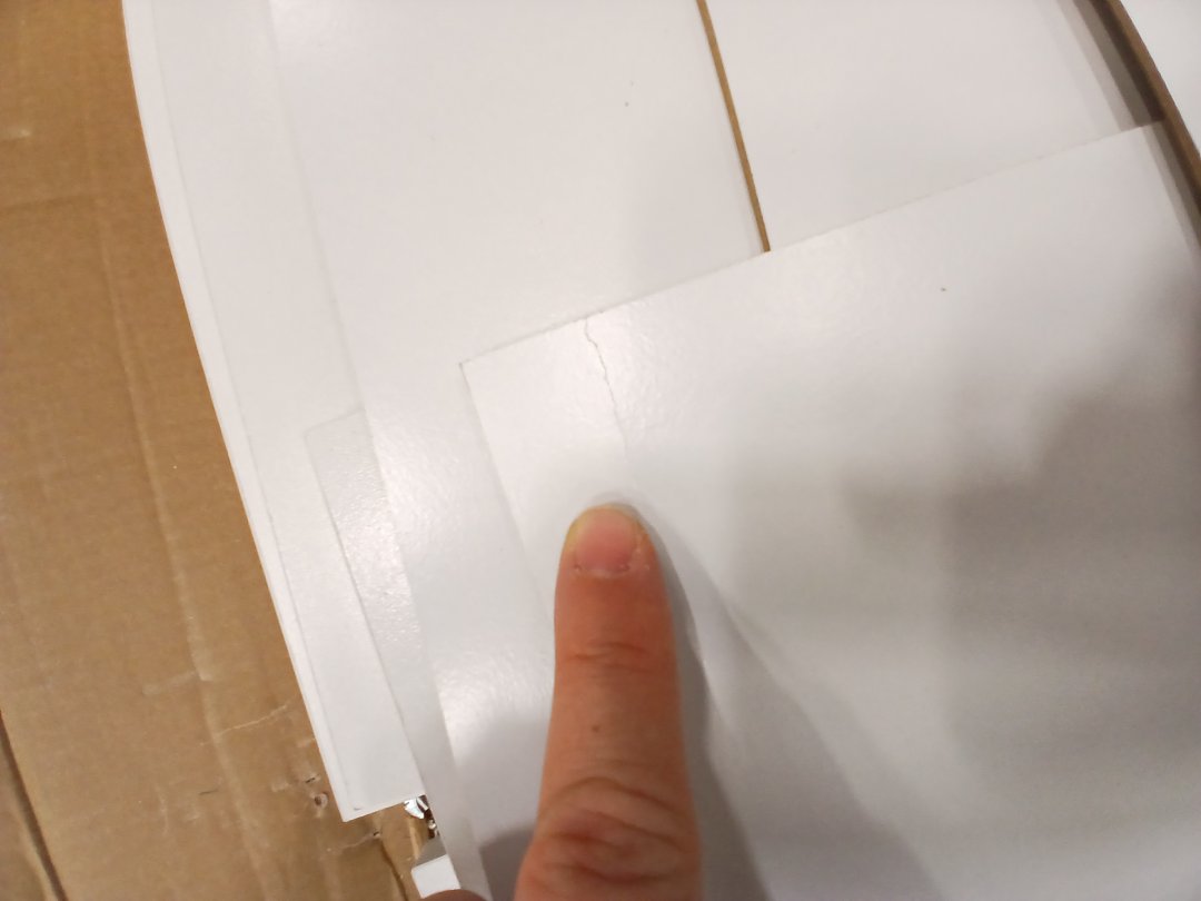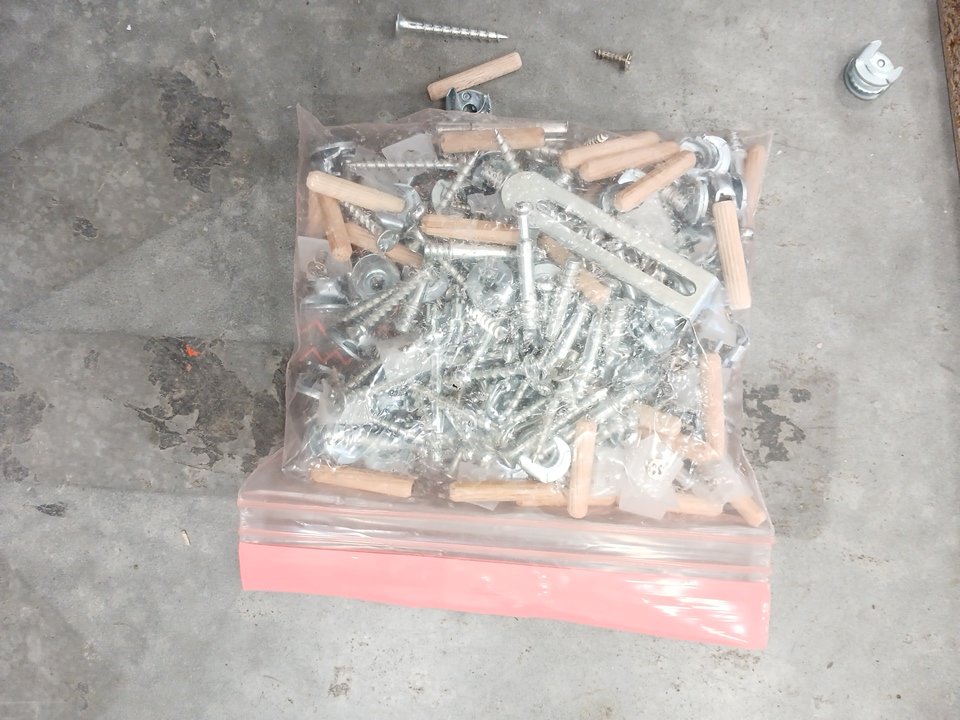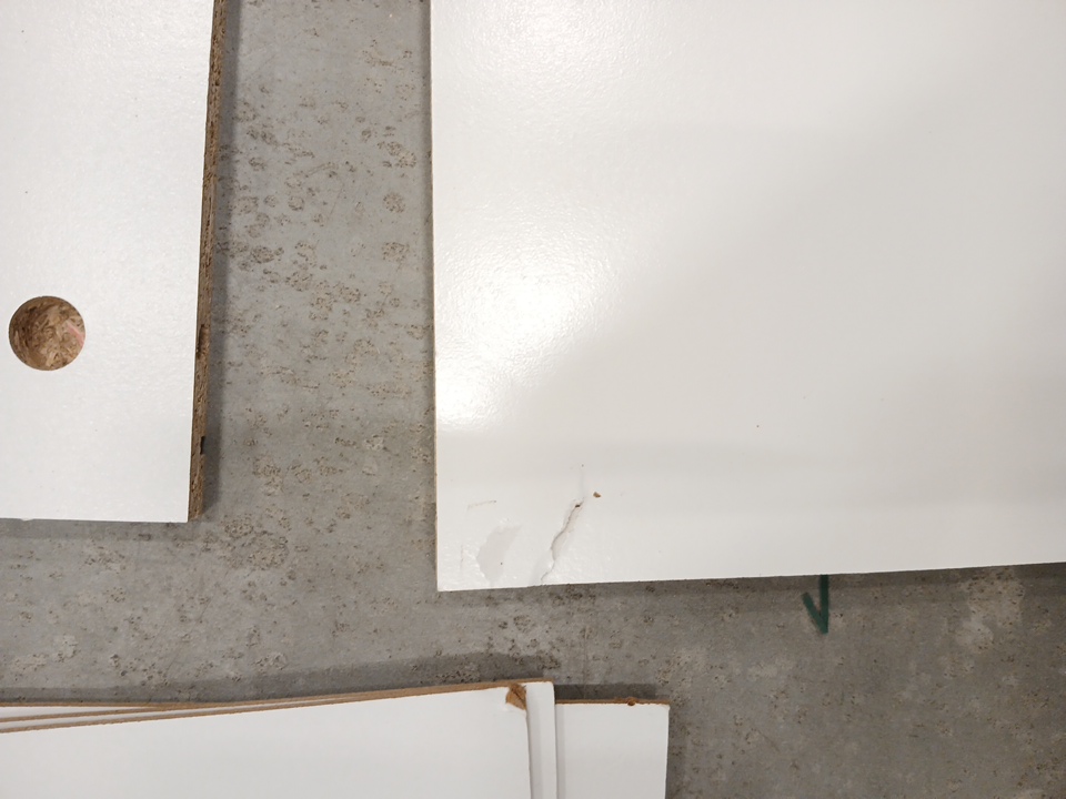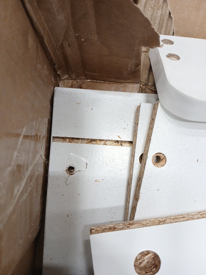 This item has some parts that already have hardware attached. This item has light scratches, some chips to its edges, and cosmetic cracks. Additional hardware is required