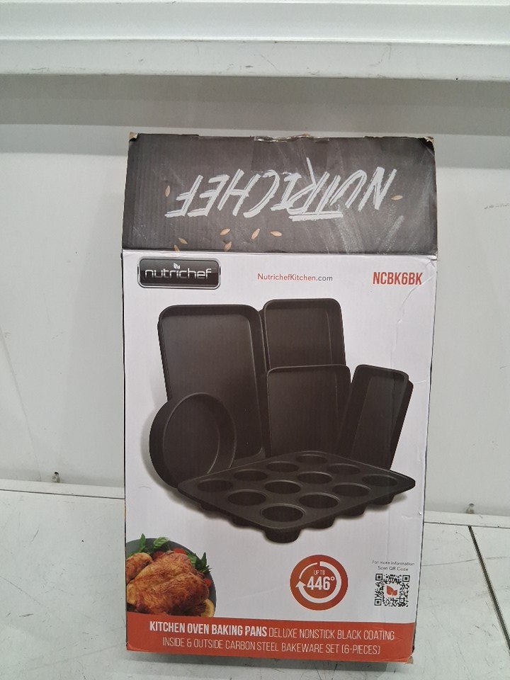6PC NutriChef Baking and Cookie Carbon Steel Oven Baking Pans with Non-Stick Black Coating Inside & Outside - black (model: ncbk6bk)