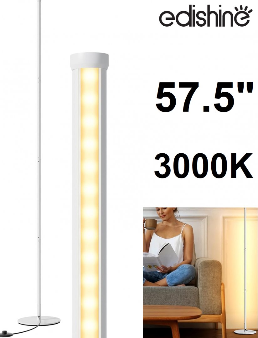 edishine dimmable adjustable height led corner floor lamp light - 57.5" max height - 3000k - white (model: hflcb1d)