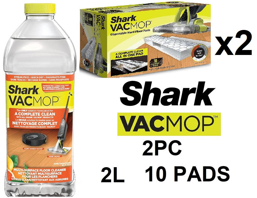 4 2PC shark vacmop Hardwood Cleaner Refill 2L bottle, Citrus Clean Scent and 10 Disposable Hard Floor Vacuum and Mop Pad Refills - (models: VCW60C & VMP10M3C)