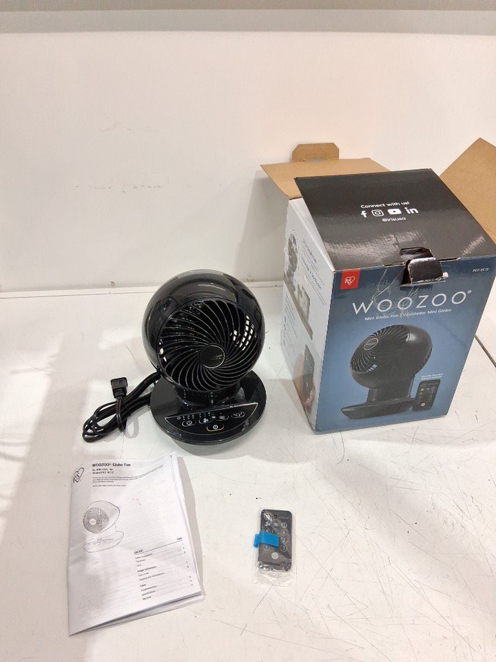 iris woozoo mini desk top globe fan with 6 vertical tilt positions horizontal oscillation and remote control - 9.84" - black (MODEL: pcf-sg12)