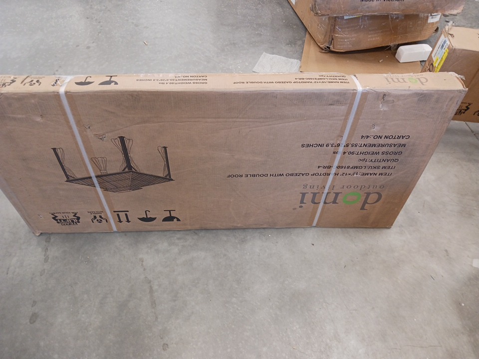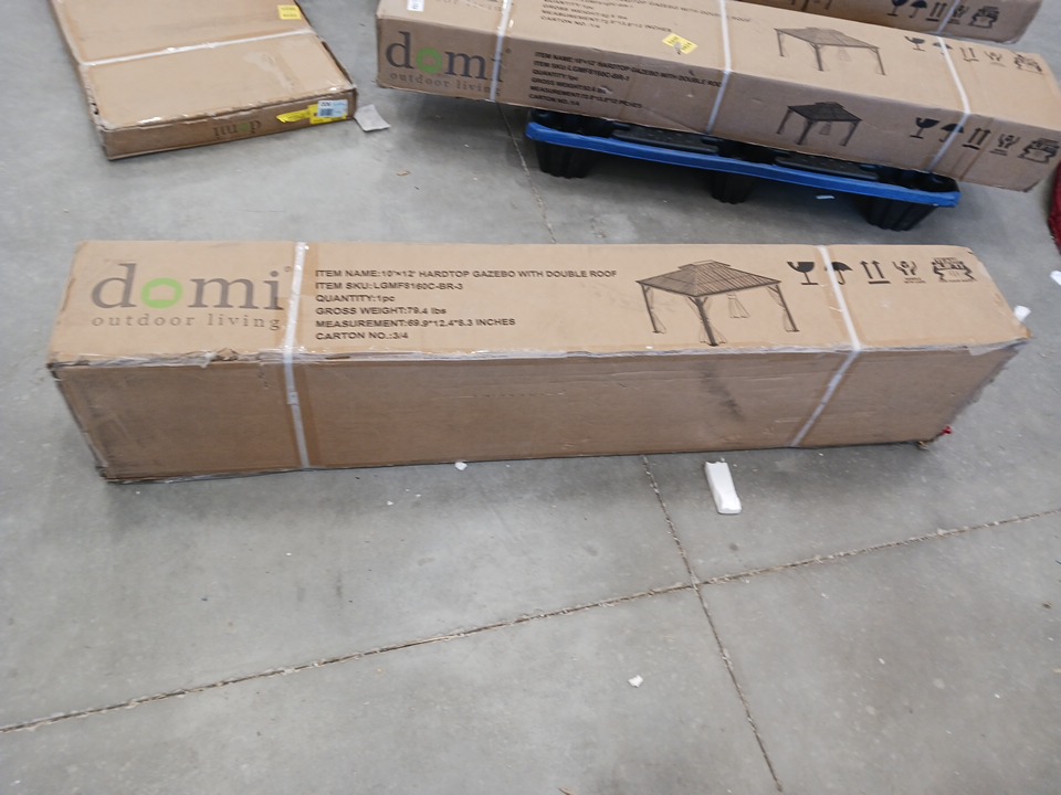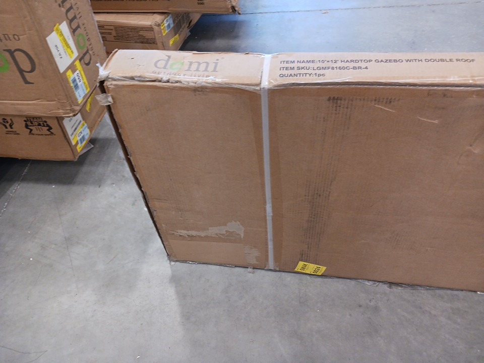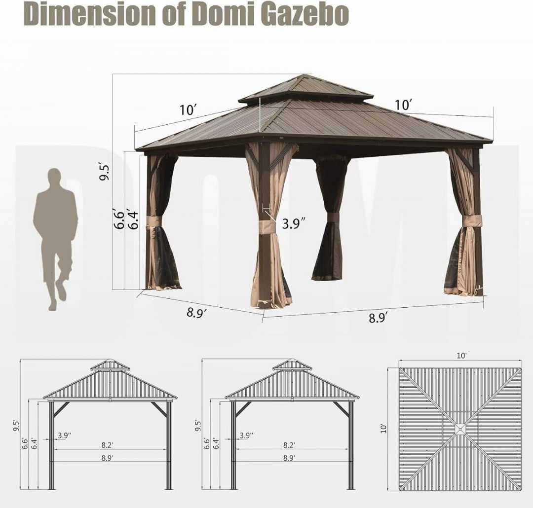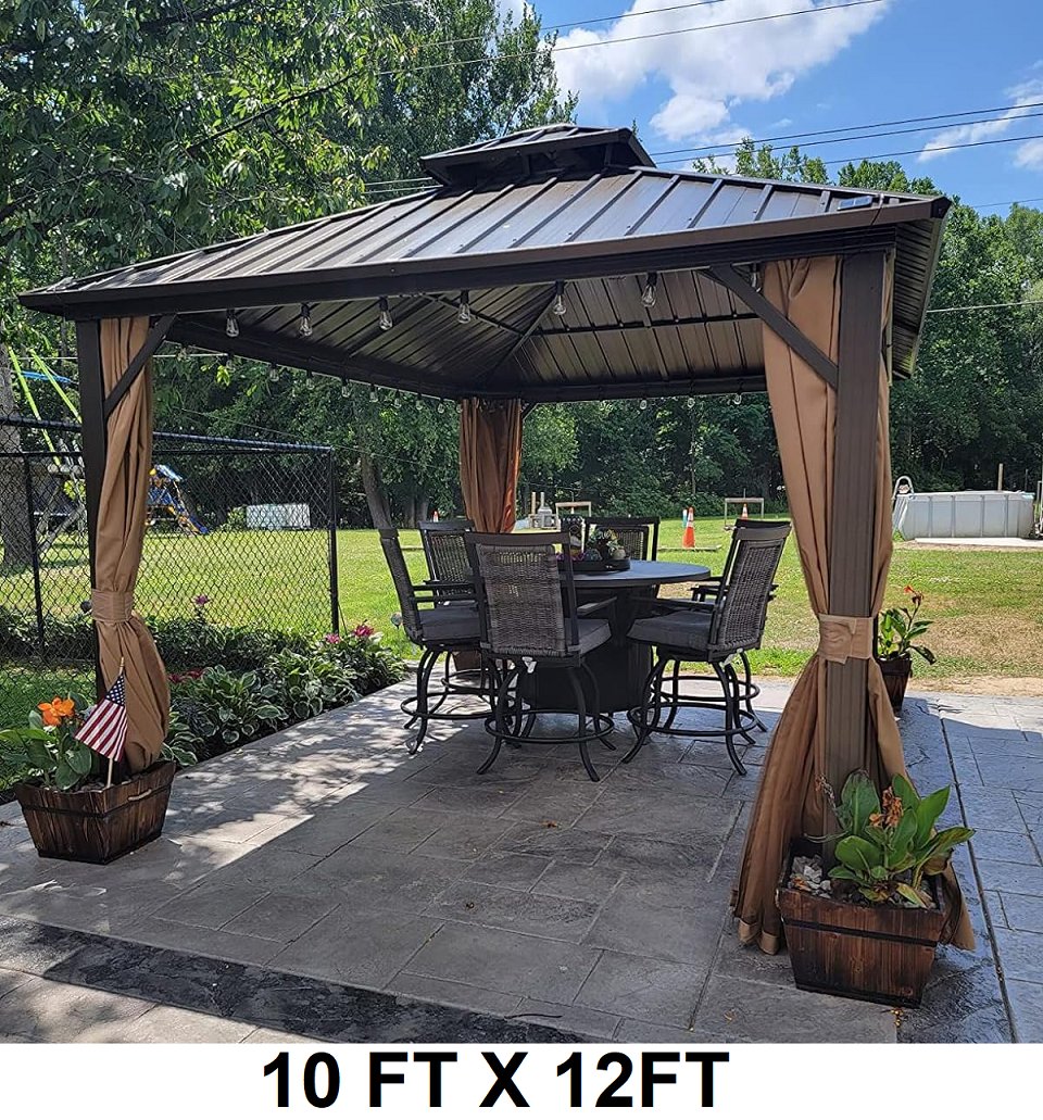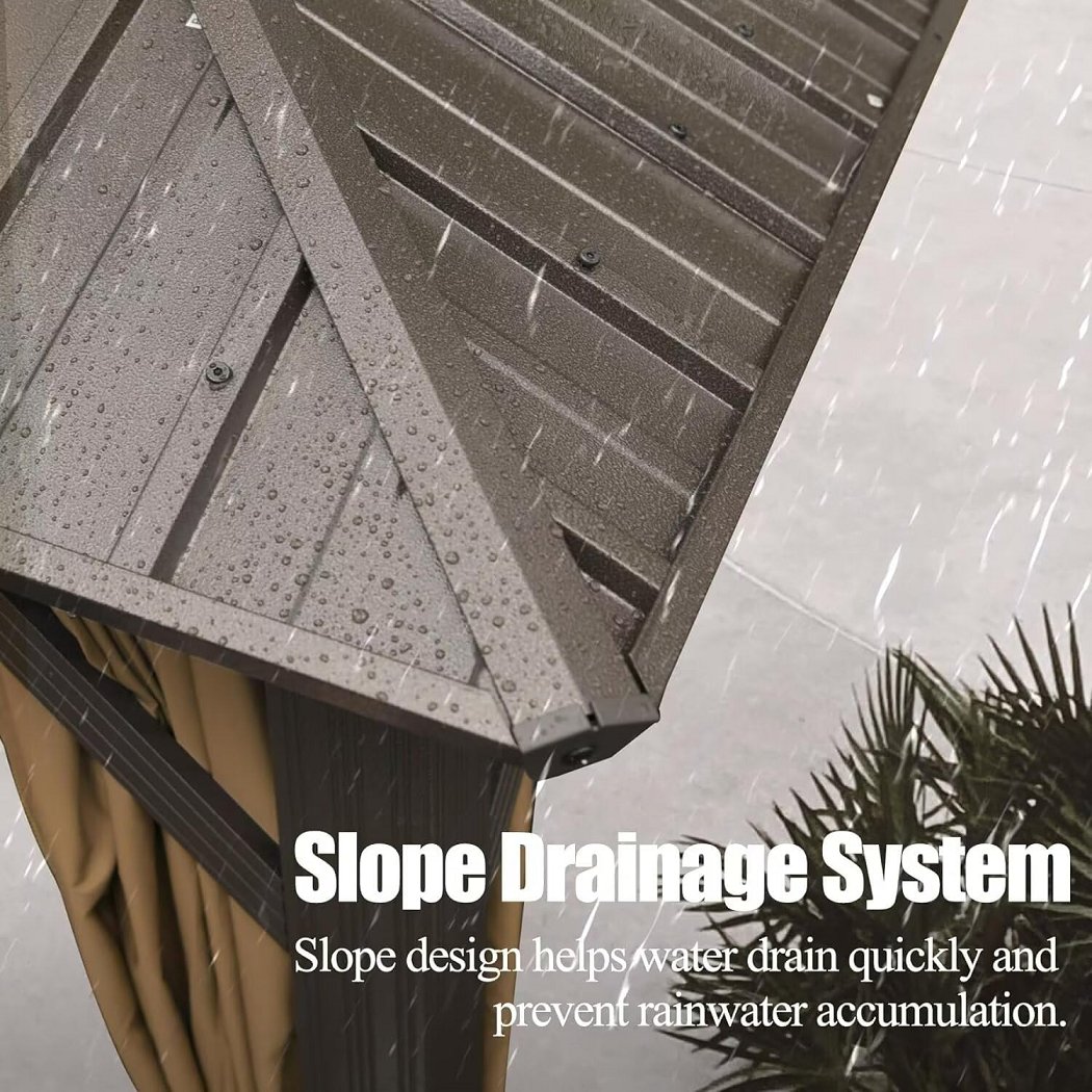 Domi steel Roof Gazebo with Zippered Mosquito Sidewalls, Double-Layer Ventilated Hardtop, Full-Length Zippered Mesh Curtains, Reinforced Corner Brackets and Integrated Gutter System - Brown - 10FT X 12FT