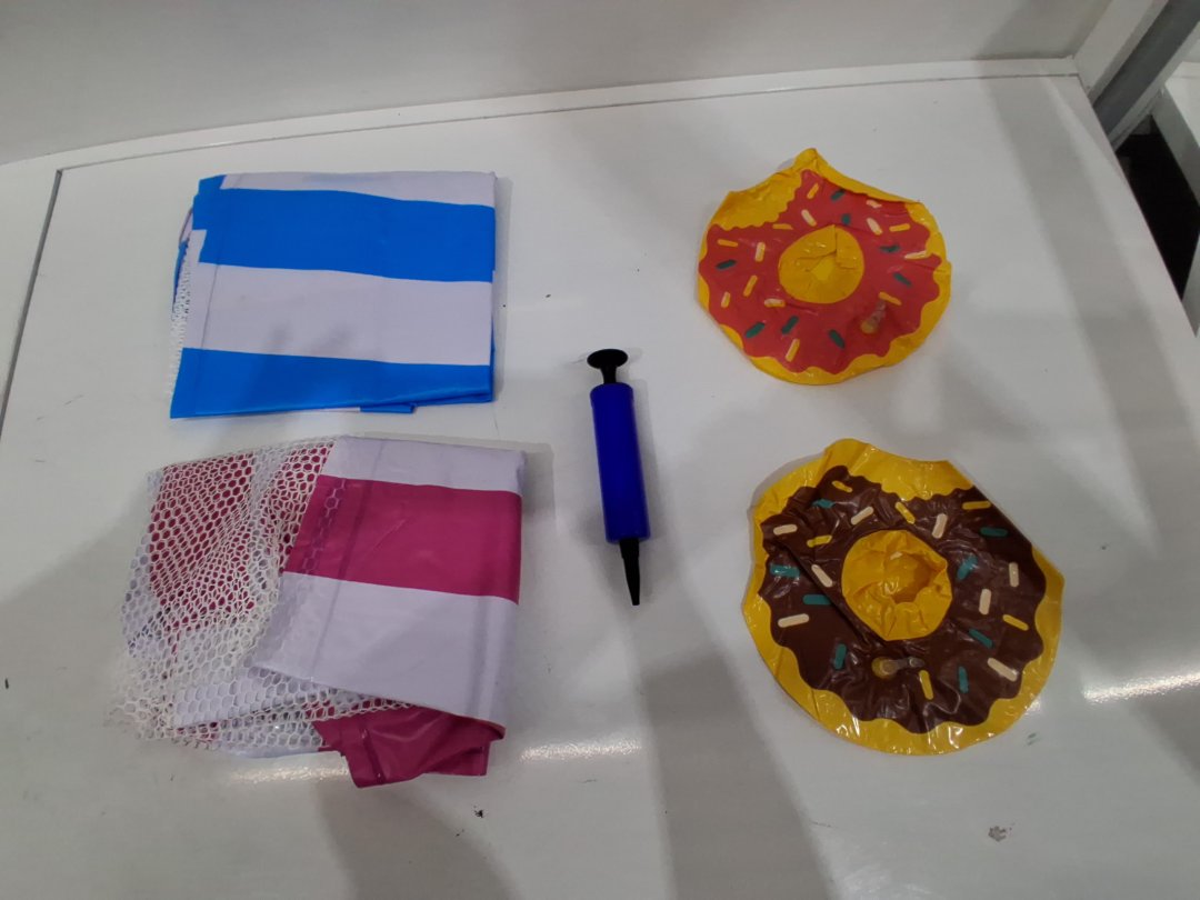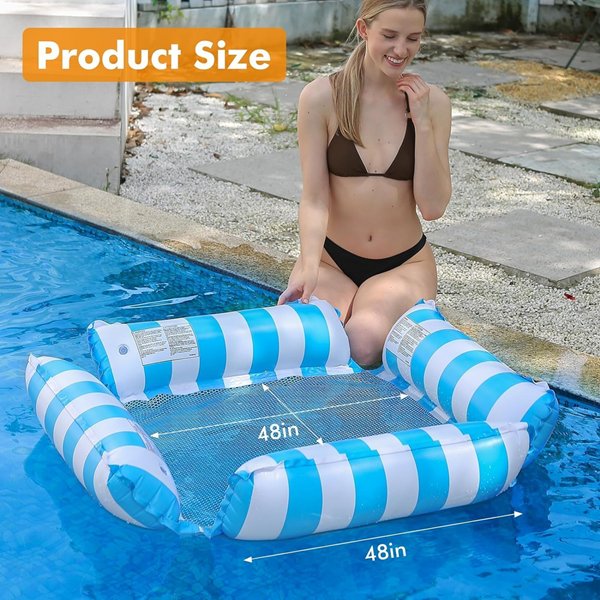 5PC Inflatable Pool Floats SET Multi-Purpose Hammock Floating Chair and donut float drink holders - 48" X 48" - Pink/Blue/White