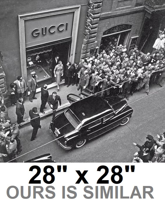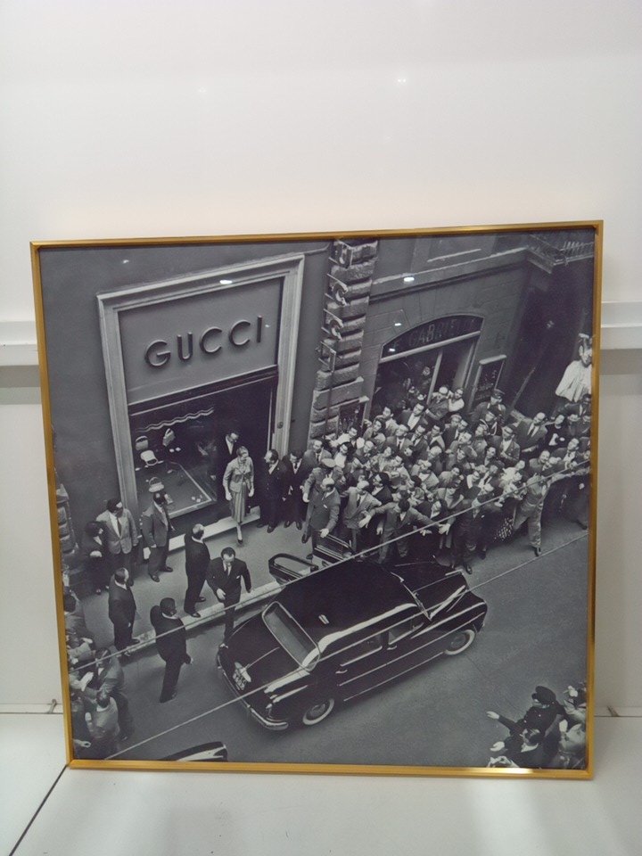 framed wall art "opening of first gucci store 1953, New York" - 28" x 28" - black/white