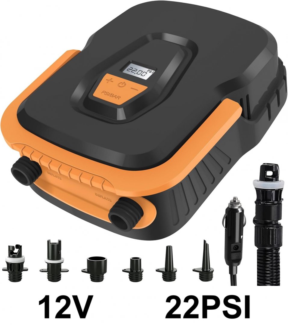Eufymax High Pressure SUP Paddle Board Pump With 12V Car Connector - 22PSI 12V - Black/Orange (Model: PM13)