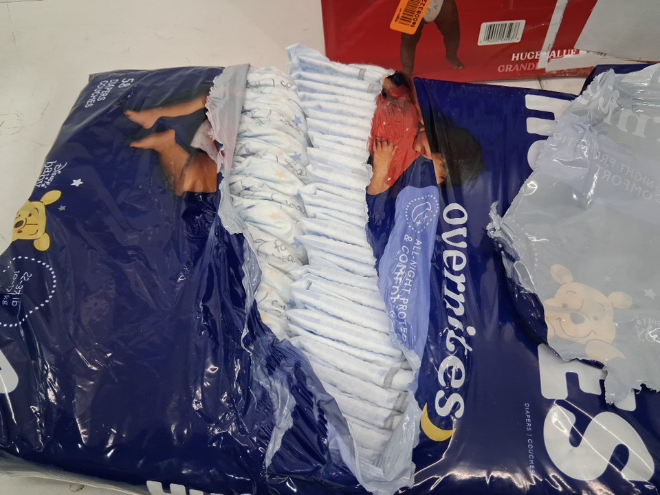 open bags and appears that a few diapers could be missing, counted as well, see photos.