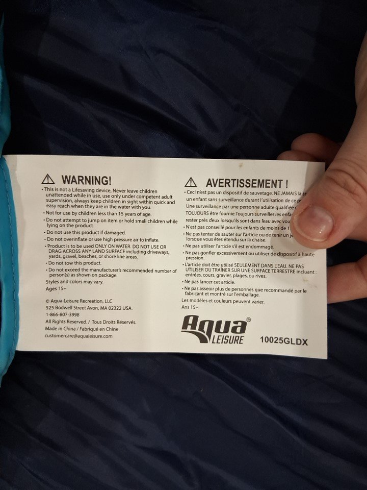 AQUA LEISURE AQUA ZERO GRAVITY POOL CHAIR with detachable canopy - 42" - 250LB CAPACITY - BLUE FERN (model: wcl20594bl)