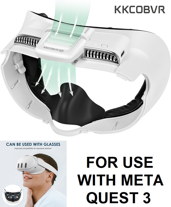 KKCOBVR K3 Facial Interface Fan with Leather Face Pad, Compatible with Meta Quest 3, Glasses Friendly - White
