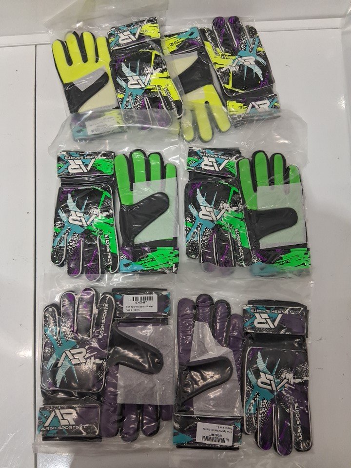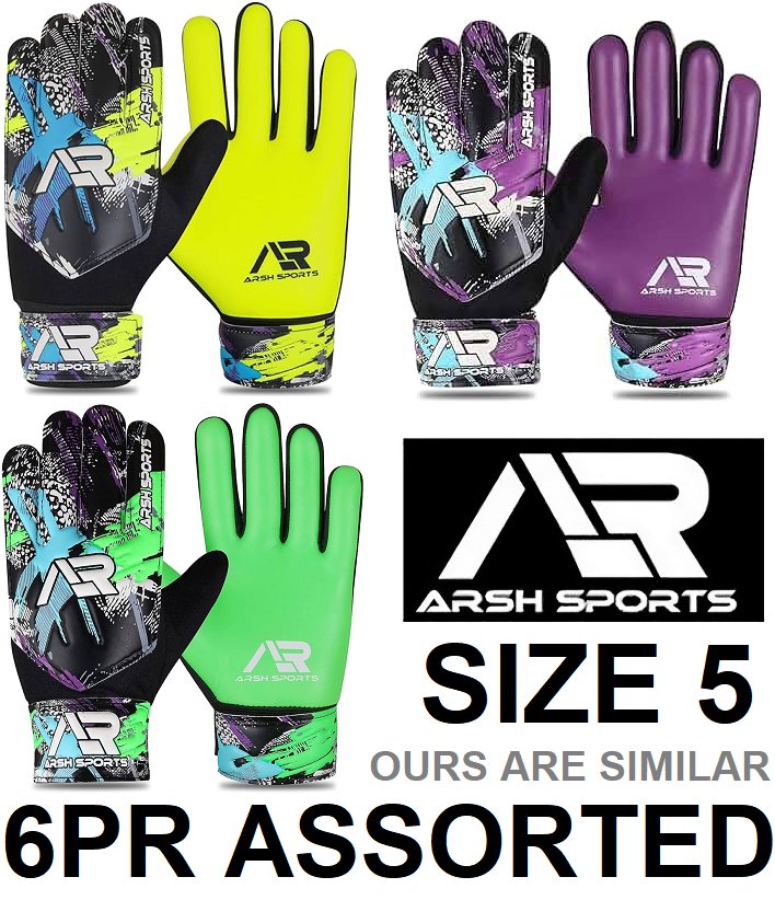 6PR assorted kid's arsh sports soccer gloves - size 5 - assorted colours YELLOW / PURPLE / GREEN