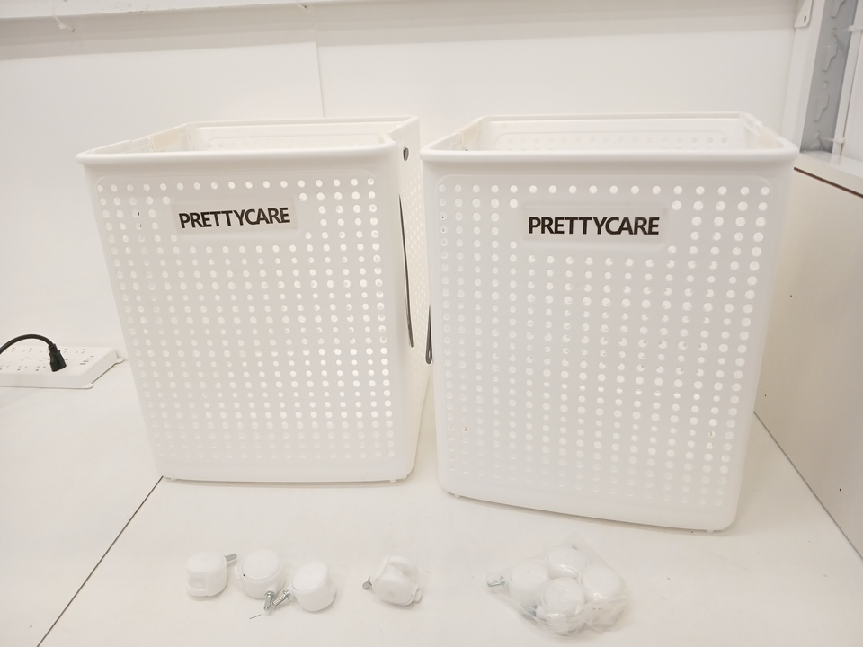 2PK PrettyCare Collapsible Laundry Hamper with Handles and wheels - 70L - white