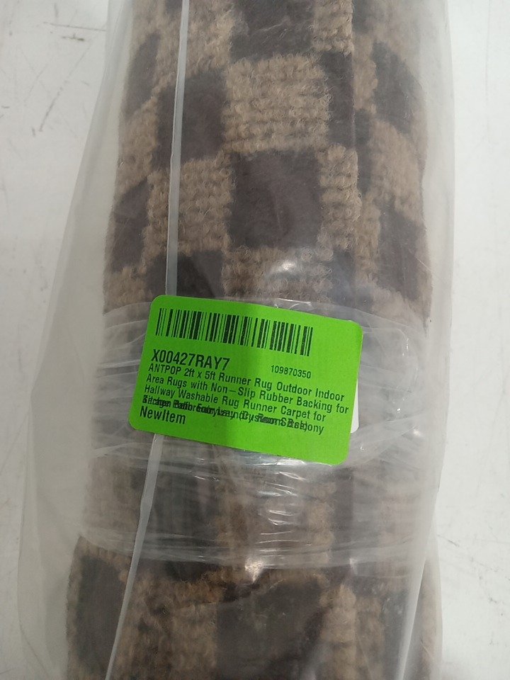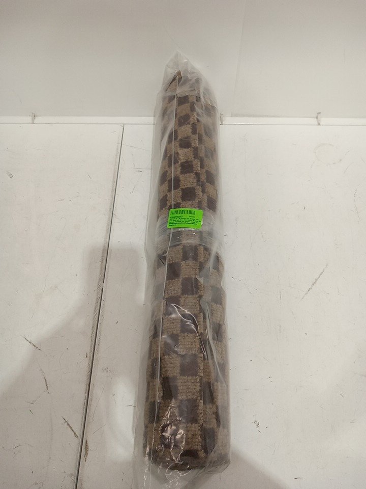 antpop non-slip indoor/outdoor washable low-pile runner rug carpet - 2ft x 5ft - brown checkered