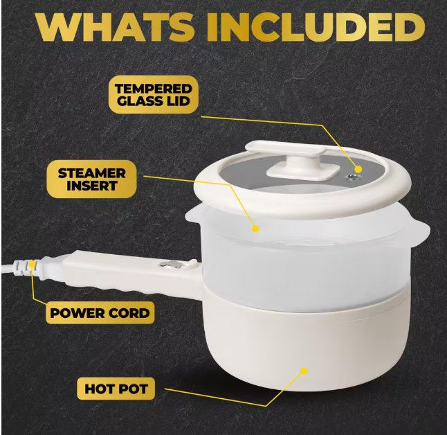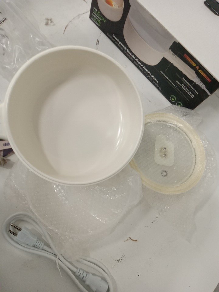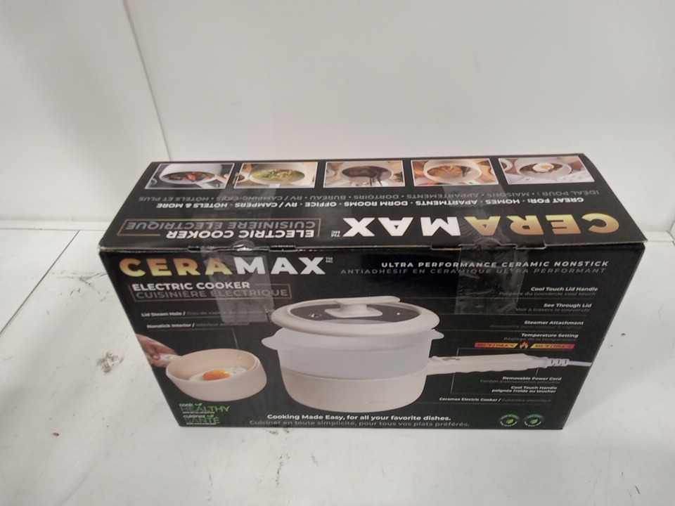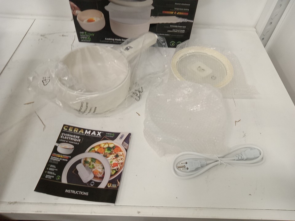 CERAMAX Portable Ceramic Nonstick Electric Multi-Cooker Cooking Pot with Food Steamer - 1.6QT - CREAM (MODEL: 6390)