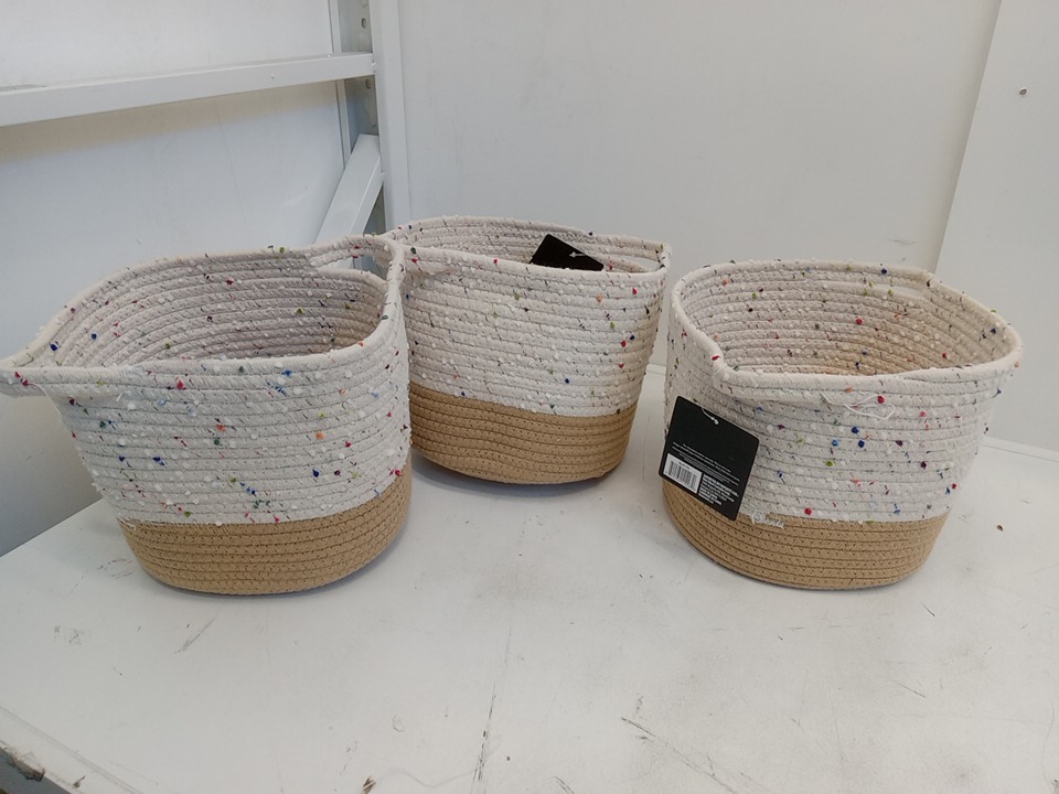 3PK Julipa Storage SMALL Basket with Speckles - 8"X 10" - NATURAL (MODEL: SA-8111S)