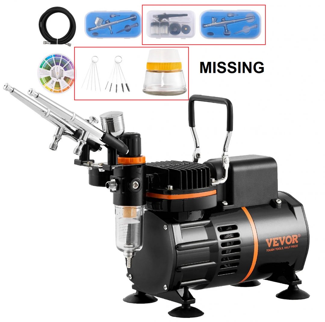 Items missing from this listing are clearly highlighted in the photos for transparency. Please review all images carefully to understand exactly what is included and what is not. The main air compressor is present and have been inspected and appear to be in good condition with only minor signs of handling.