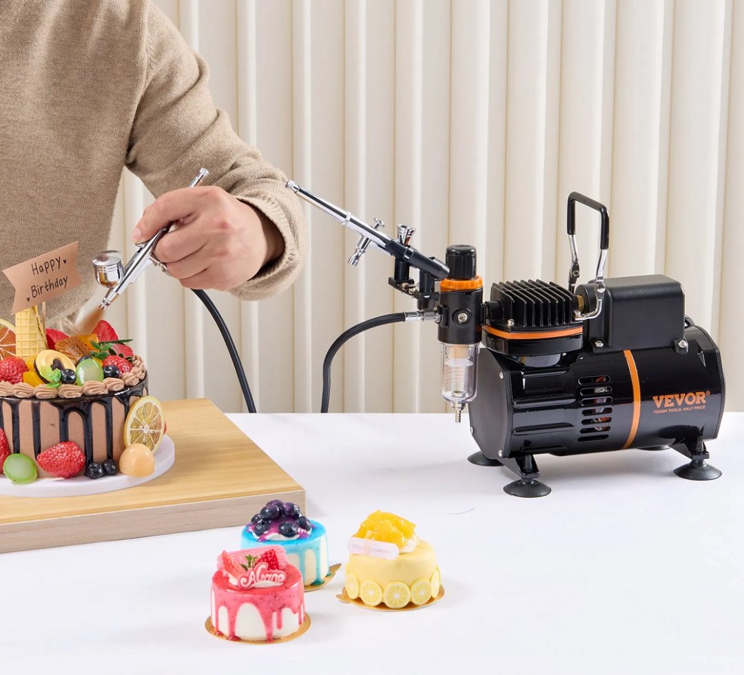 VEVOR Professional Dual-Fan Airbrush Kit with High-Performance Air Compressor, Adjustable Airflow Control, Quick-Connect Hose, Airbrush Holder, Color Mixing Wheel, and Cleaning Brush Set - Black (Model: TC-20B)