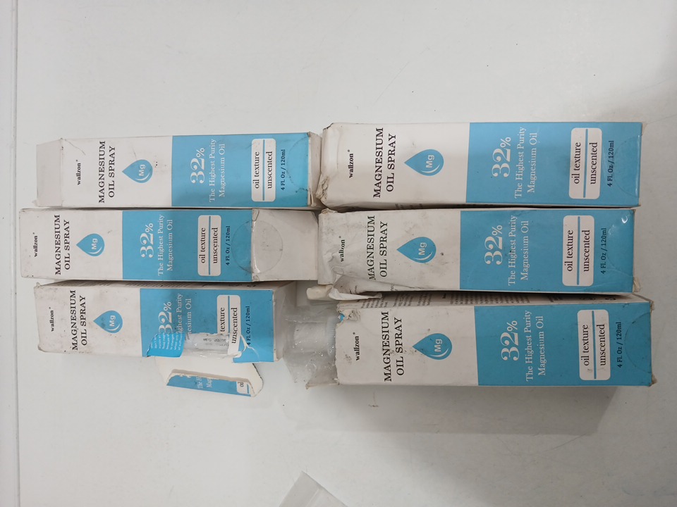 6 wallzon pure magnesium oil spray for energy boost, muscle/stress relief, and sleep aid - 32% concentration - 120ml / each - unscented