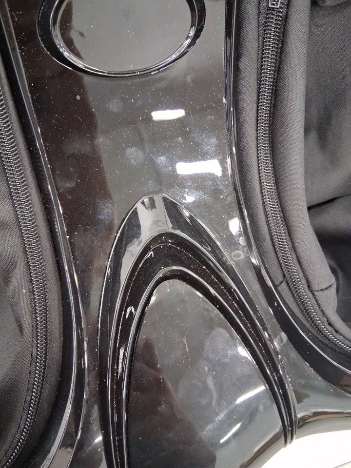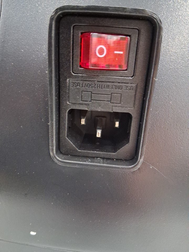 Unable to test for function as there is no power cord included in the box, as such customer will need to supply their own. There are also some liquid stains on the front and side plastic, which may indicate some previous use - see photos. Otherwise, appears in good condition with no visible damage.