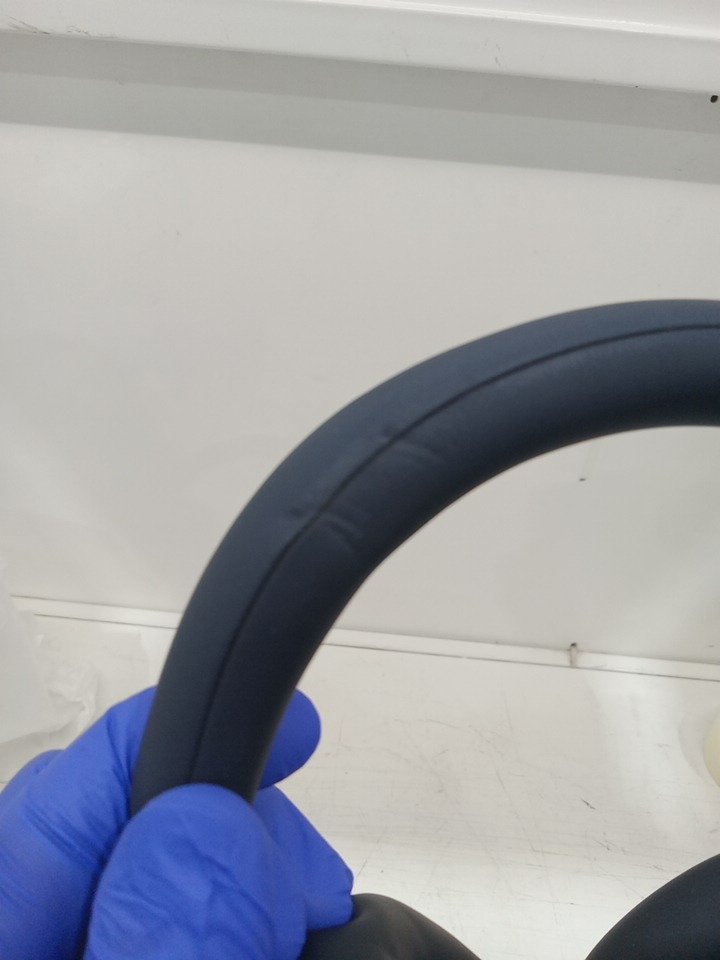 Please note the left side of the neck band has cosmetic blemish and has been bent, there are minor scratch marks on the outer ear pad from previous use. The charging cable did not arrive with the product, a third party cable has been provided. Tested for power and functionality. (Please see photos)