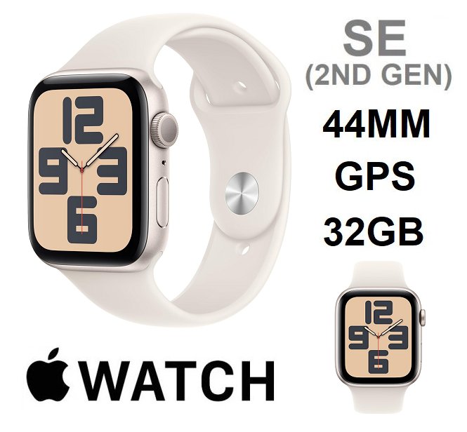 Apple Watch SE (2nd Gen) 32GB 44mm GPS Smartwatch - starlight Aluminium Case & Sport Band (MODEL: A2723 / MXEv3CL/A)