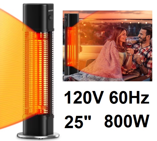 southeatic indoor/outdoor oscillating infrared electric tower heater - 800w, 120V, 60Hz - 25" (model: XT08TS)