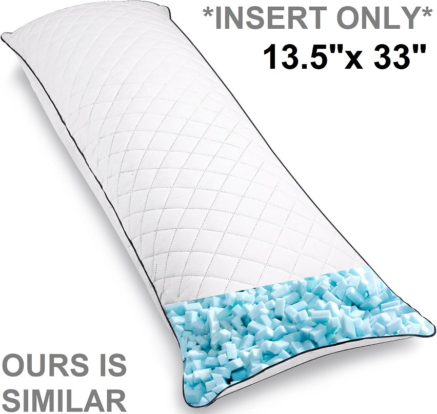 Shredded memory foam BODY pillow *insert only* - 13.5" x 33"