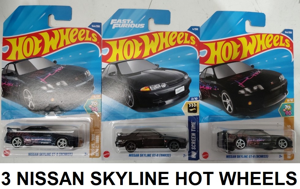 3 ASSORTED NISSAN SKYLINE GT-R (BNCR33) - fast & furious/black/blue