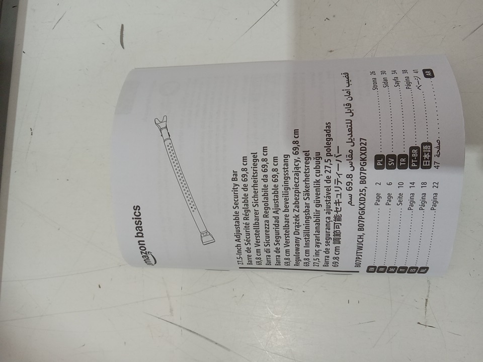 AMAZONBASICS ADJUSTABLE SECURITY BAR - 27.5" - 45" - BLACK (MODEL: AB-DH303-BK)