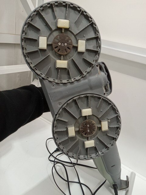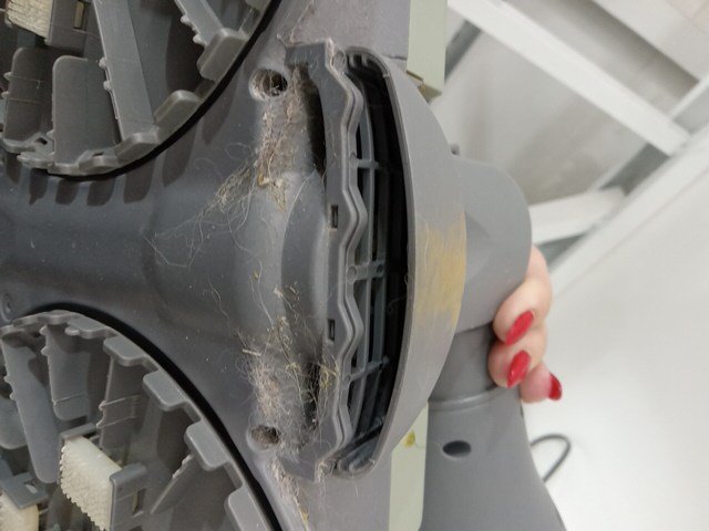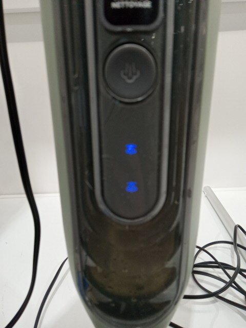 there is a a lot of what appears to be per hair built up on the under neath and side of the vacuum. there is also a brown spot on the back. no scrub pad included. tested for basic power.
