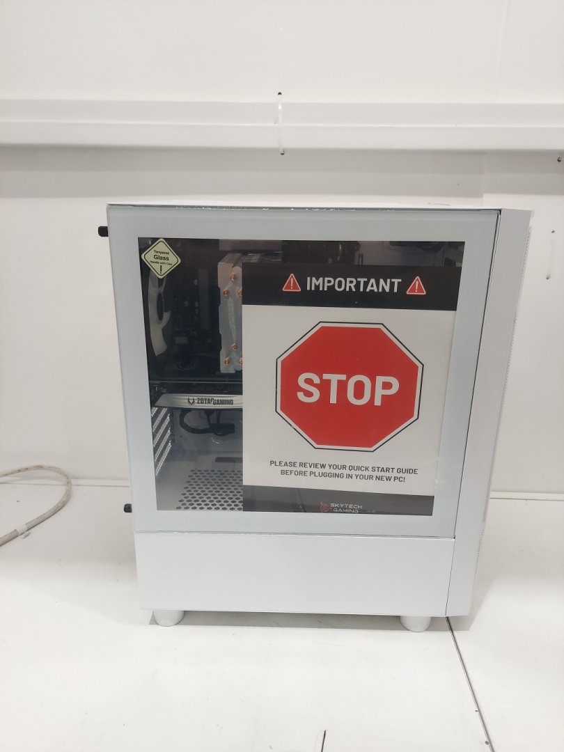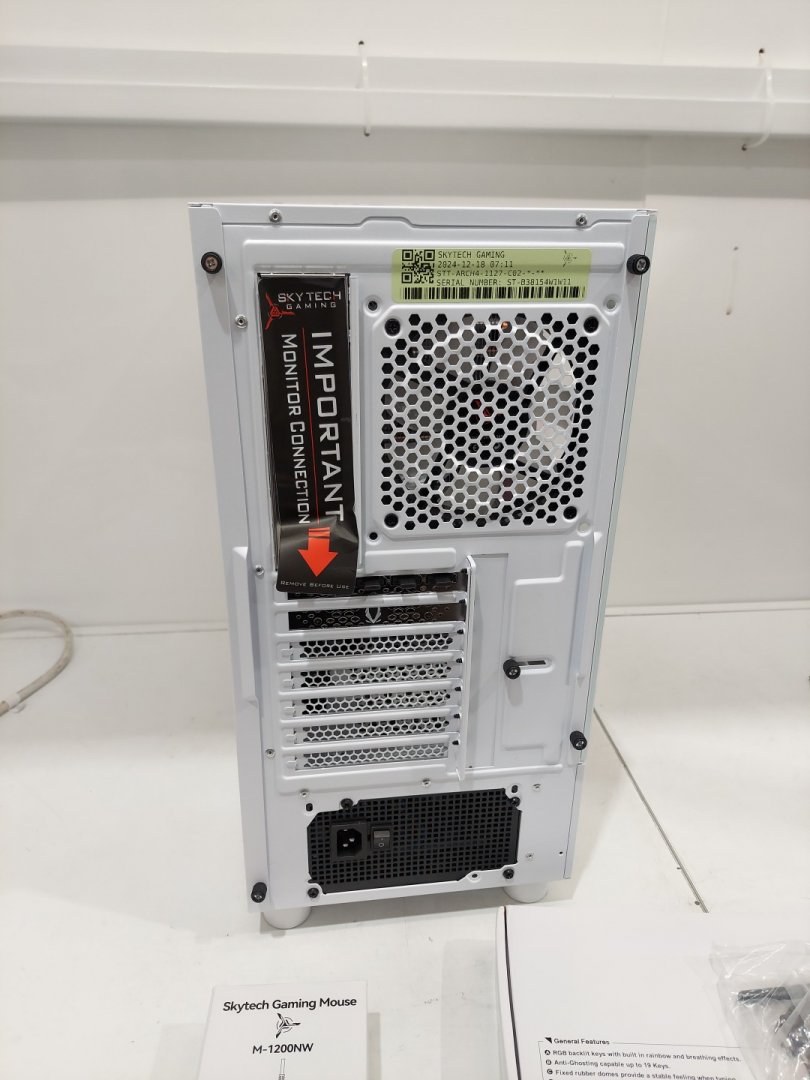 Please note that while this item arrived brand new there is a stick residue on the back of the item under the monitor connection sticker, this is to be expected and can likely be removed with some cleaning solution but this does not effect use. Tested for power and function prior to being reset. see photos.