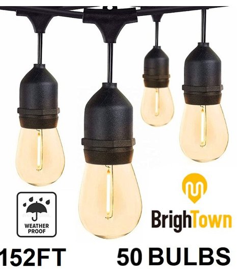 brightown led outdoor string lights, waterproof patio lights - 50 bulbs/152ft - warm white