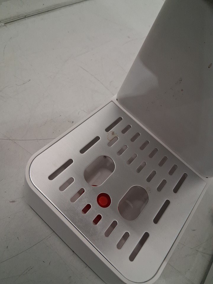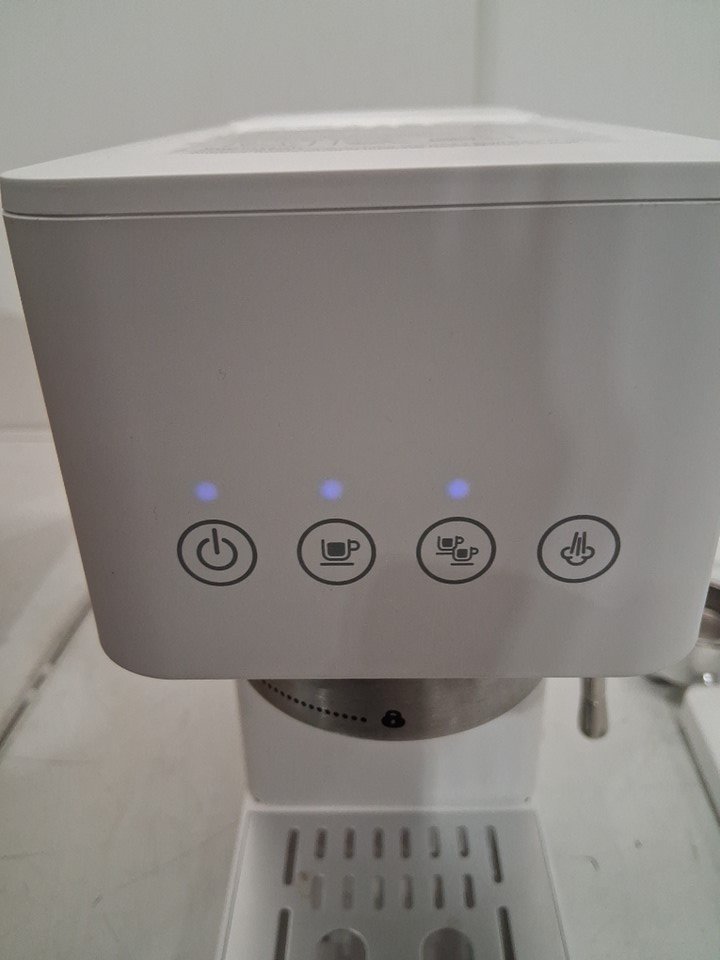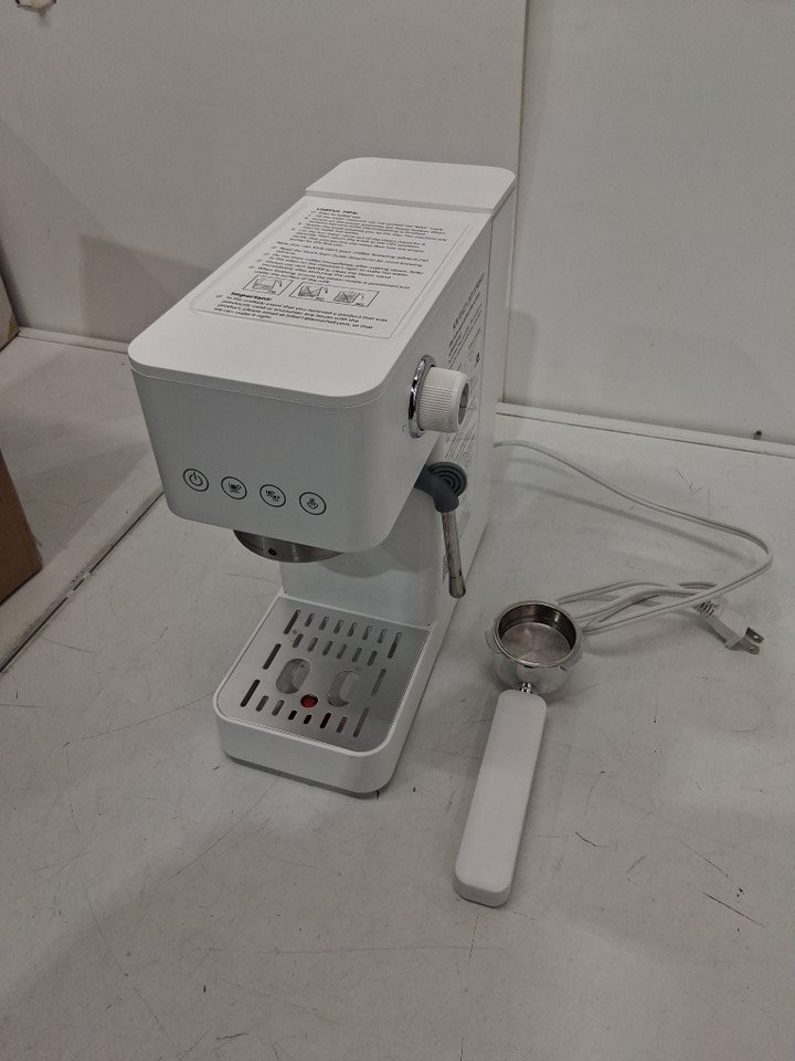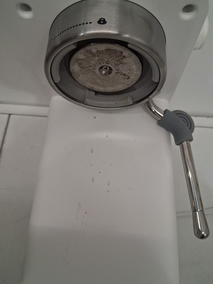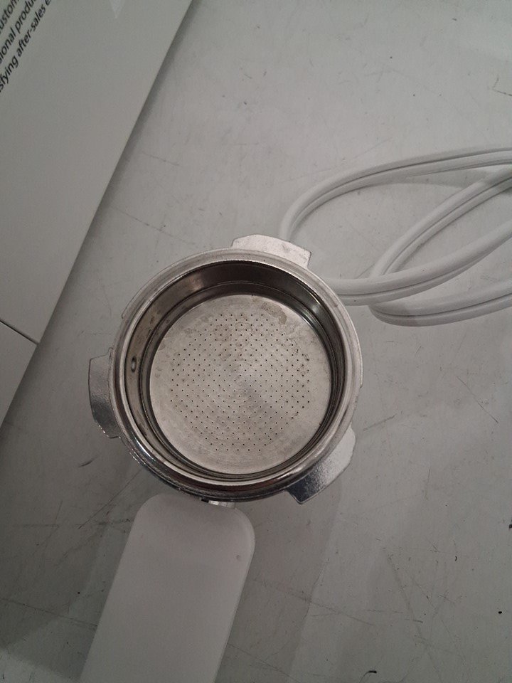 Espresso machine has visible coffee stains on it. Additional espresso inserts are missing