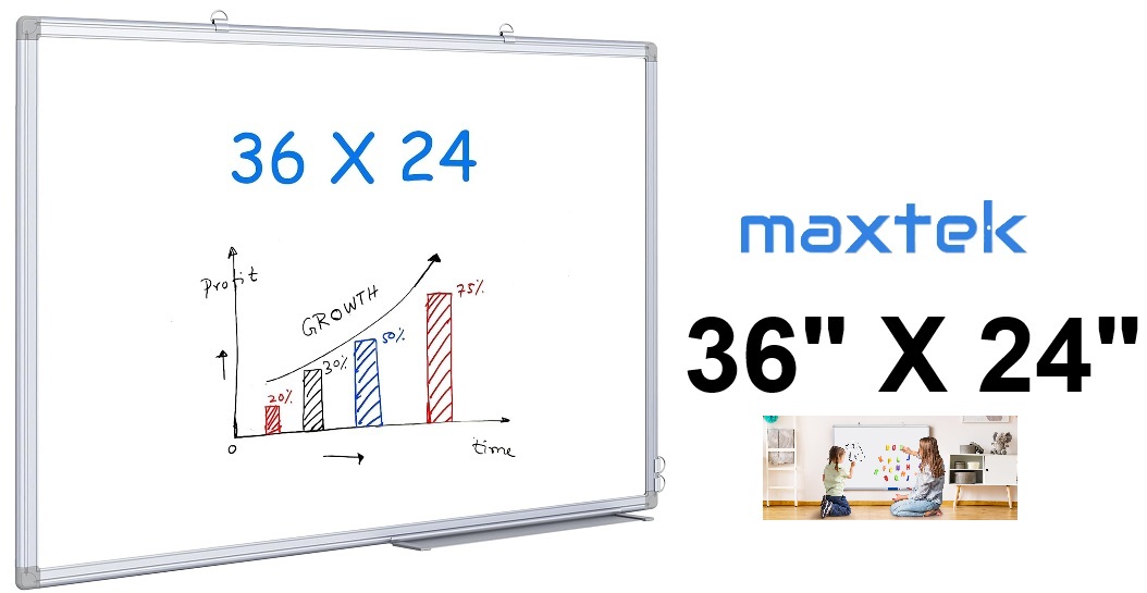 MAXTEK Magnetic White Board - 36" x 24" - white/silver (model:‎WY88)