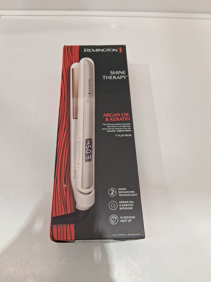 REMINGTON SHINE THERAPY FLAT HAIR STRAIGHTENER IRON INFUSED WITH ARGAN OIL & KERATIN - 1"- WHITE (MODEL: S9511)